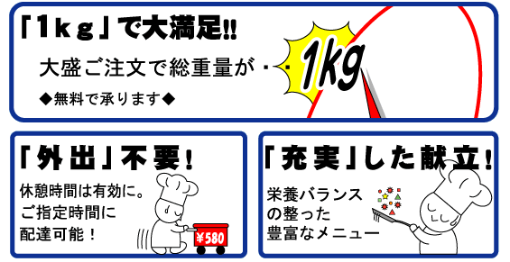 特に夜遅くなると開いているお店も限られてしまい、もしかしたらわざわざ遠くまで買出しにいっているのでは。。休憩時間の有効活用と社員の方々の健康管理にお役立てしてみてはいかがでしょうか。 配達時間はご相談して下さい。